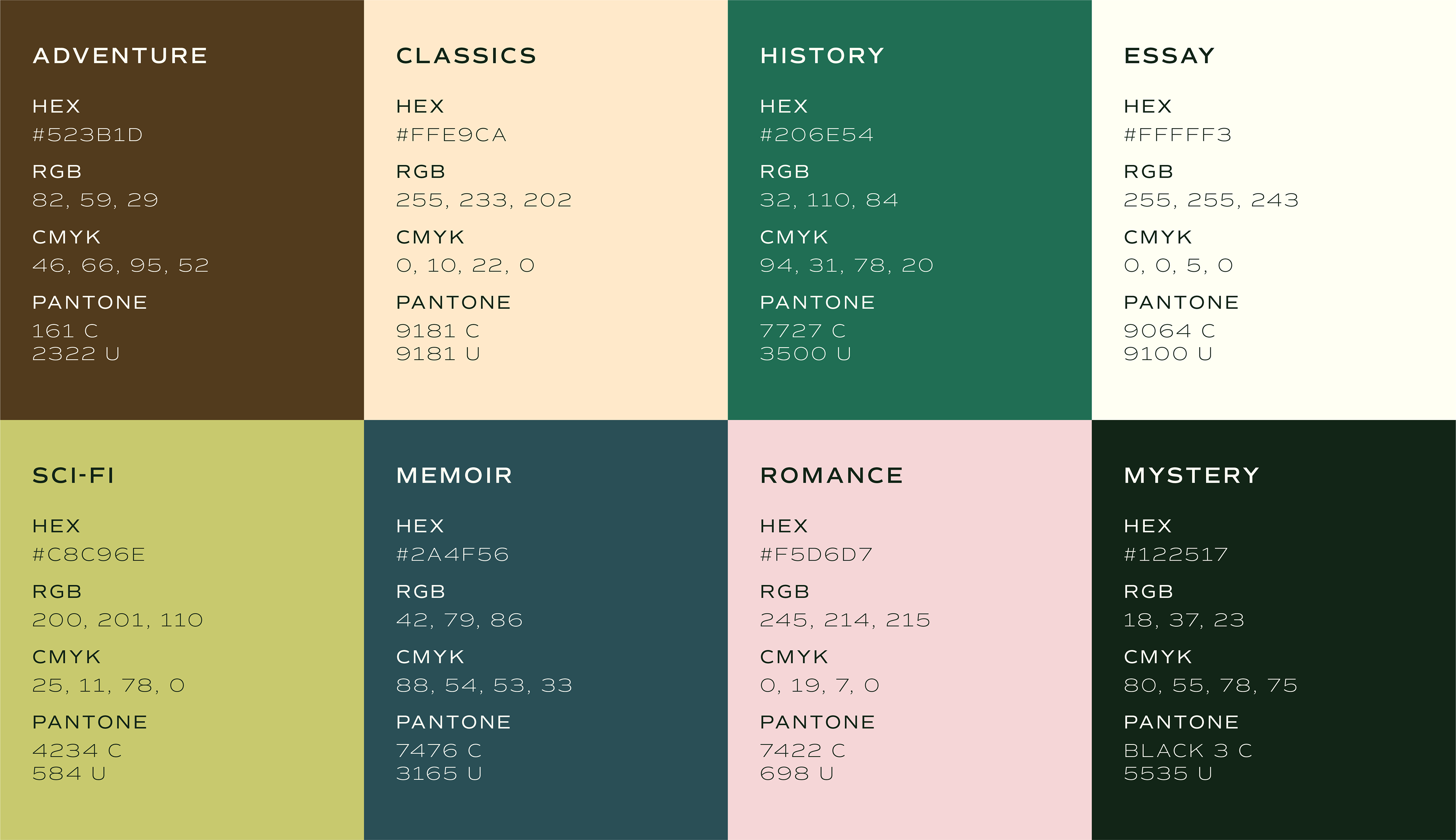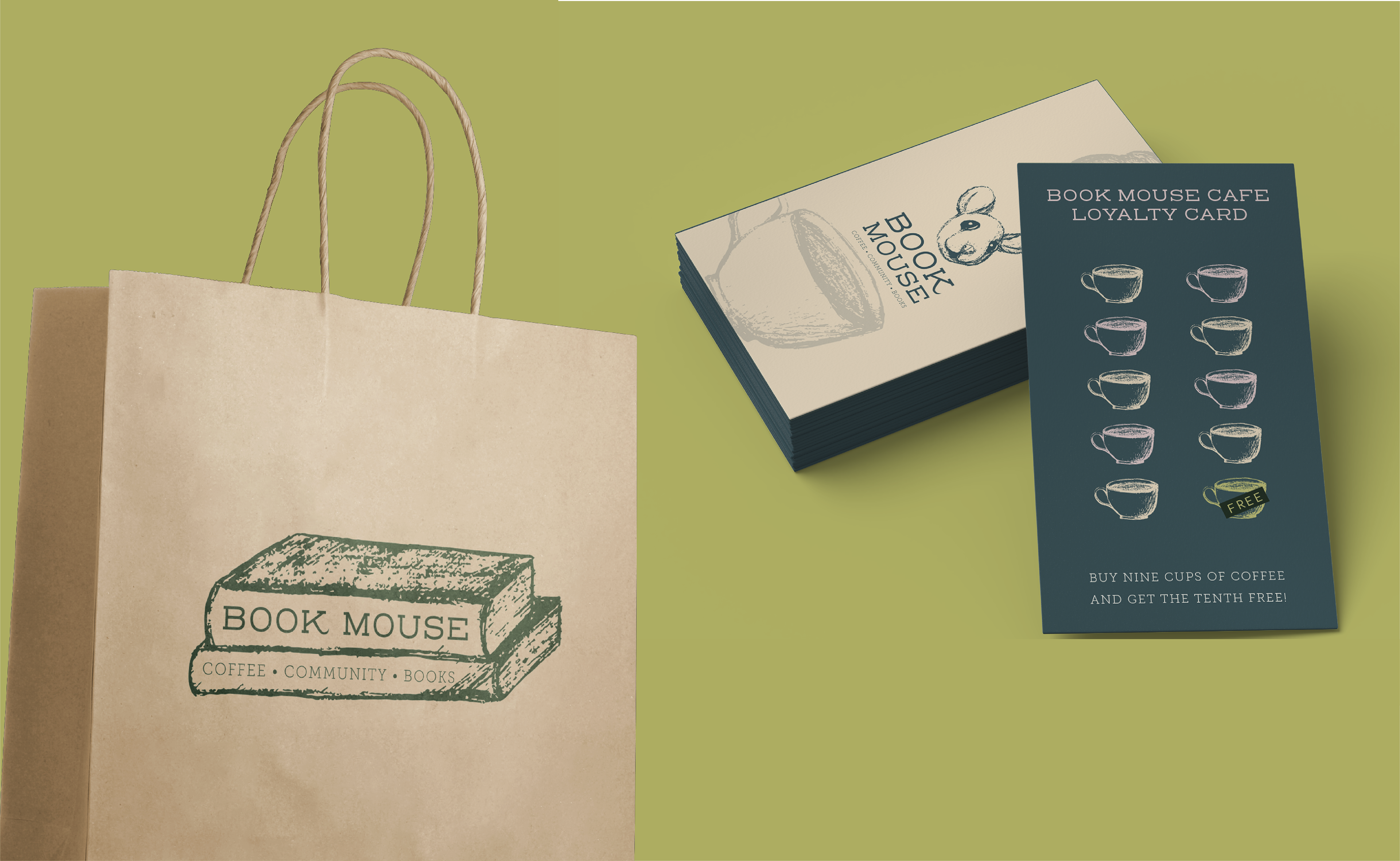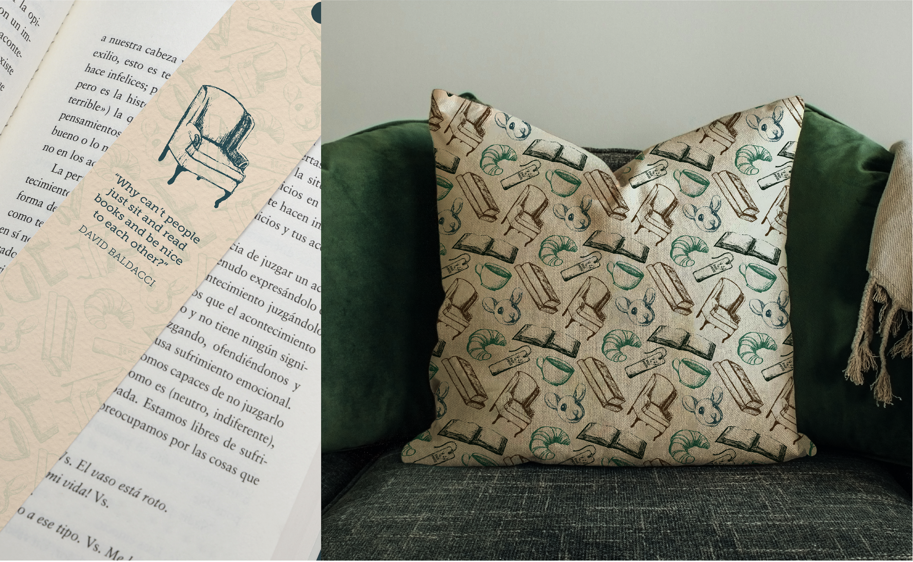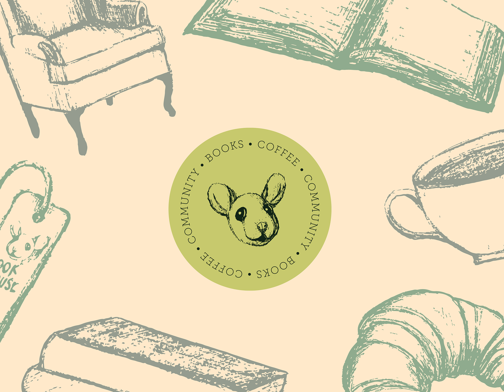 The branding for this book store included several print collateral items such as cafe loyalty cards and bookmarks as well as a pattern of hand-drawn illustrations that is extremely versatile and can be used in a variety of settings and different colorways.